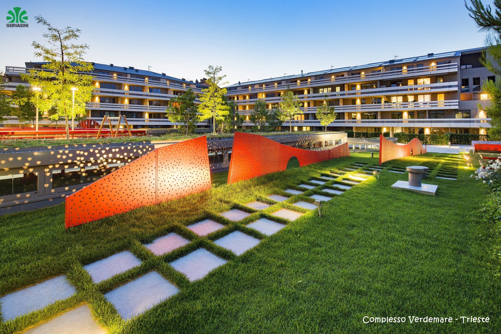 Giardini Pensili - Progetto VerdeMare - Trieste 2015 - Realizzazione delle opere a verde all'interno del Residential Park VERDEMARE sorto nell'area ex FIAT a Trieste. La superficie verde di circa 9500 metri quadri è nella maggioranza di tipo pensile e strutturato come un sistema di giardini a più livelli.