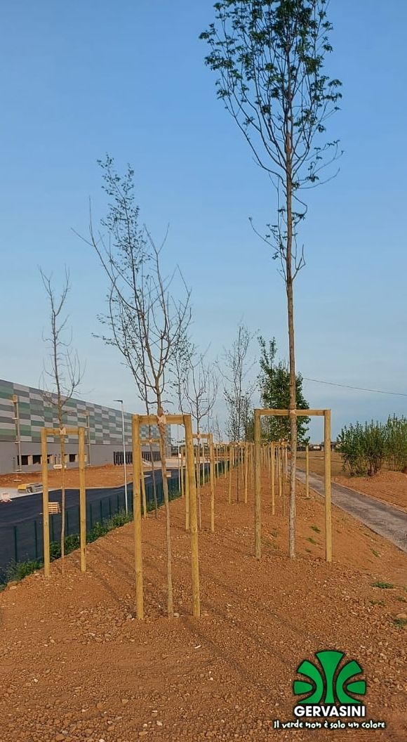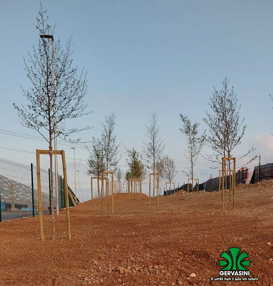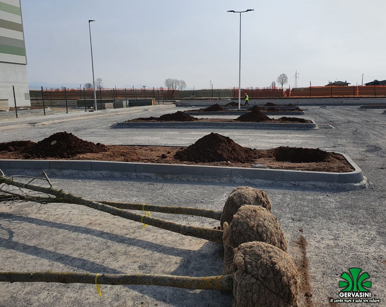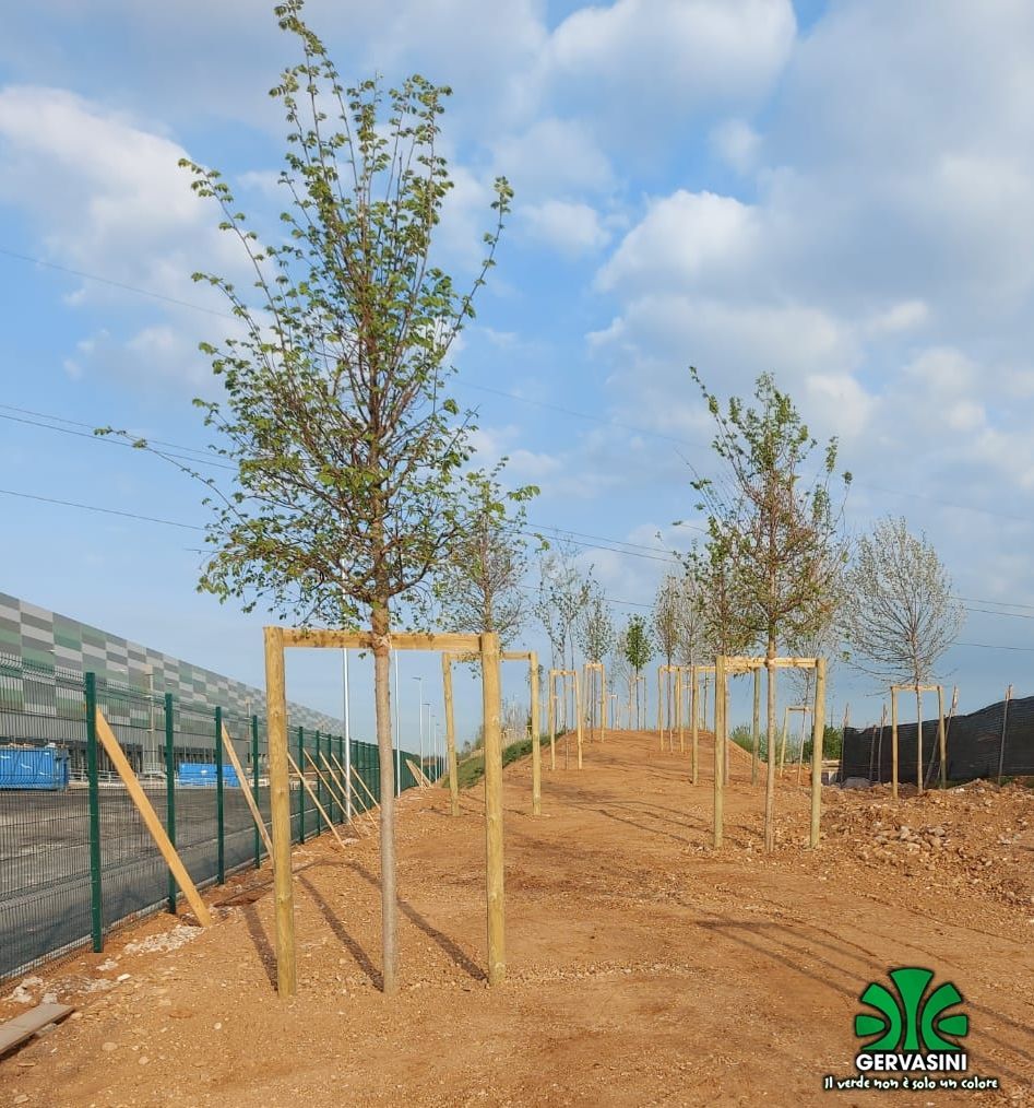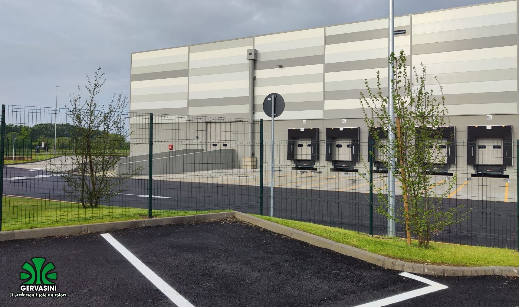 Lavorazioni per realizzazione opere a verde Polo Logistico in Chiari (BS), fornitura e posa nr. 501 alberature crf. da 10-12 a 18-20 cm. e nr. 408 arbusti vaso Ø 18, realizzazione impianto di irrigazione, semina m² 40.000 di tappeto erboso, idrosemina m² 10.000.