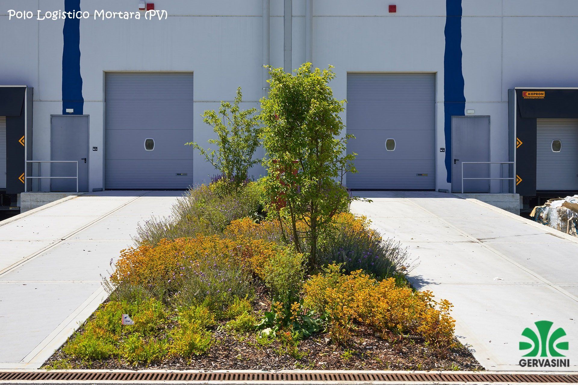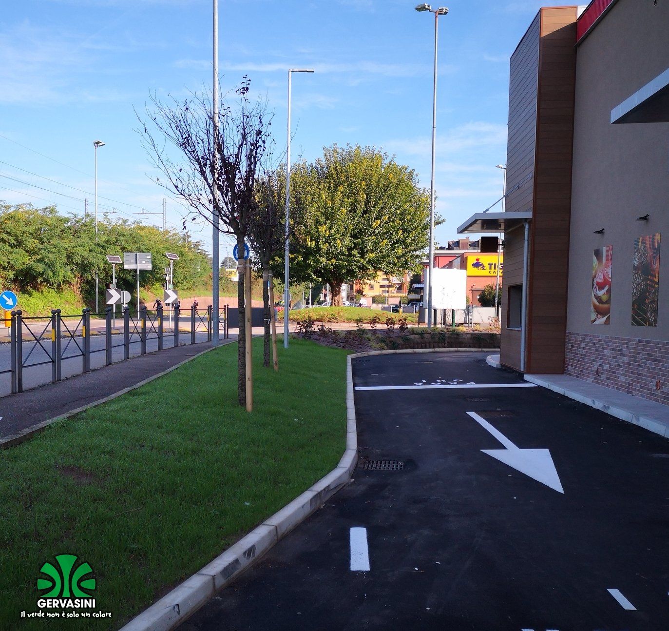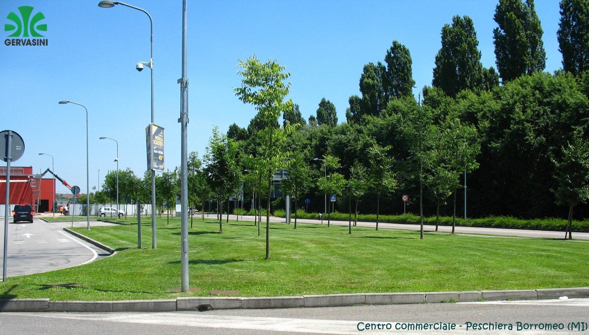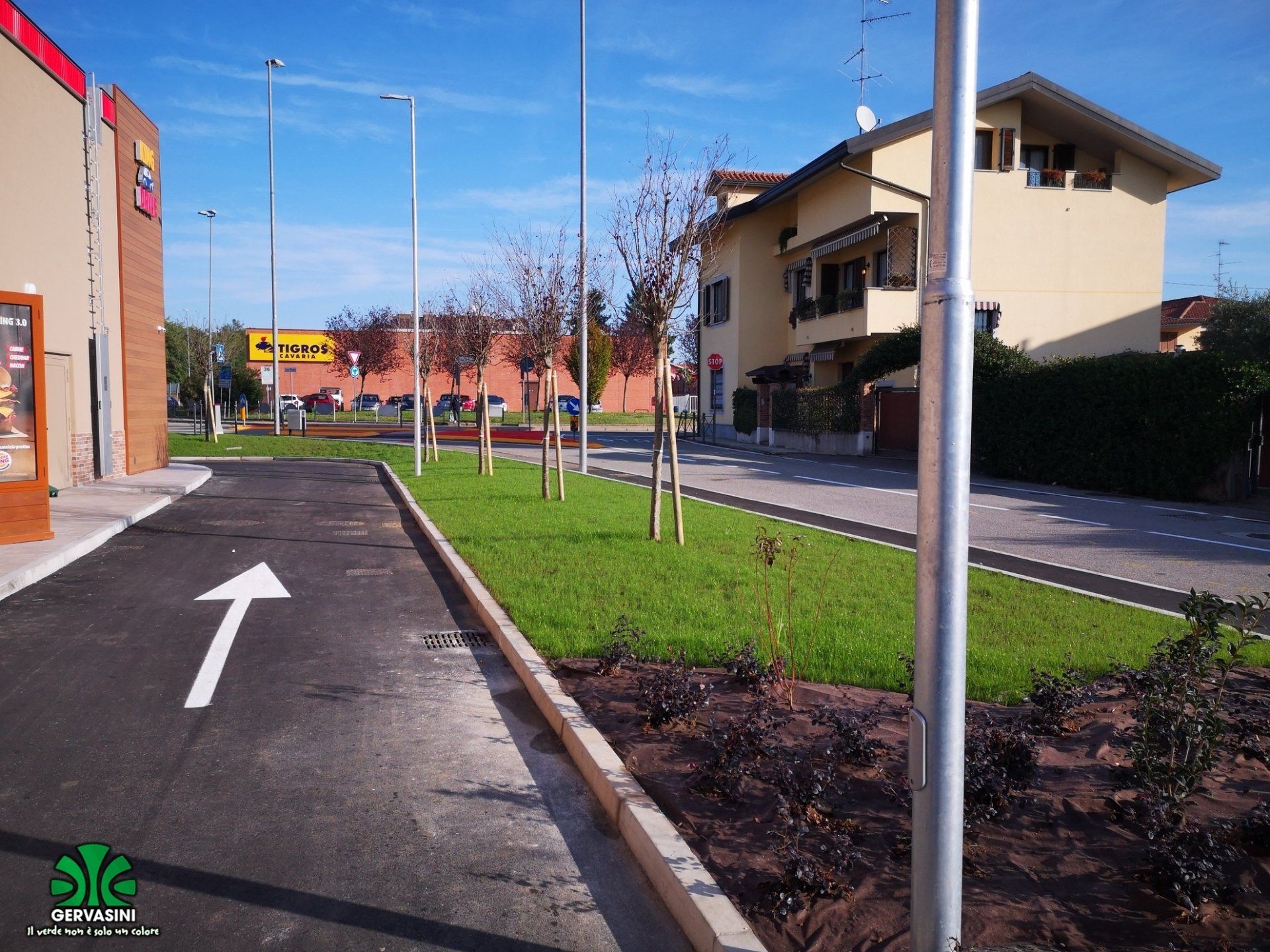Lavorazioni per realizzazione opere a verde Polo Logistico in Chiari (BS), fornitura e posa nr. 501 alberature crf. da 10-12 a 18-20 cm. e nr. 408 arbusti vaso Ø 18, realizzazione impianto di irrigazione, semina m² 40.000 di tappeto erboso, idrosemina m² 10.000.