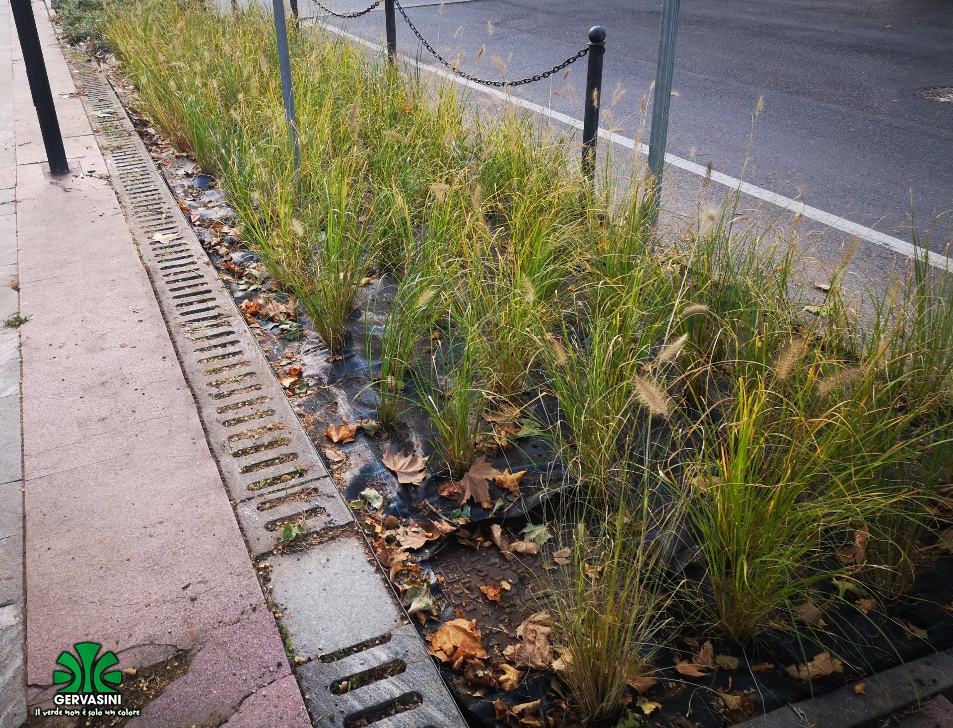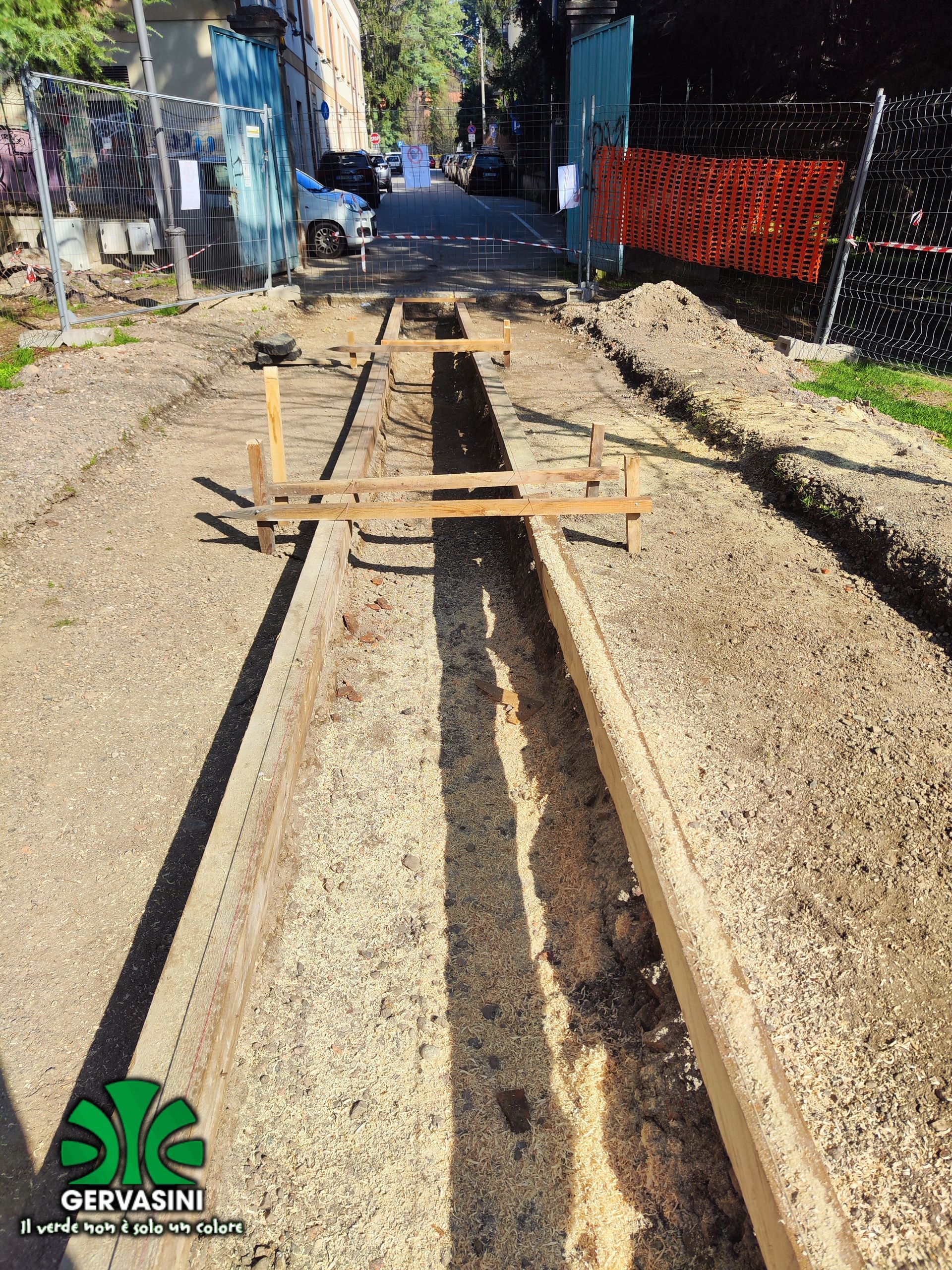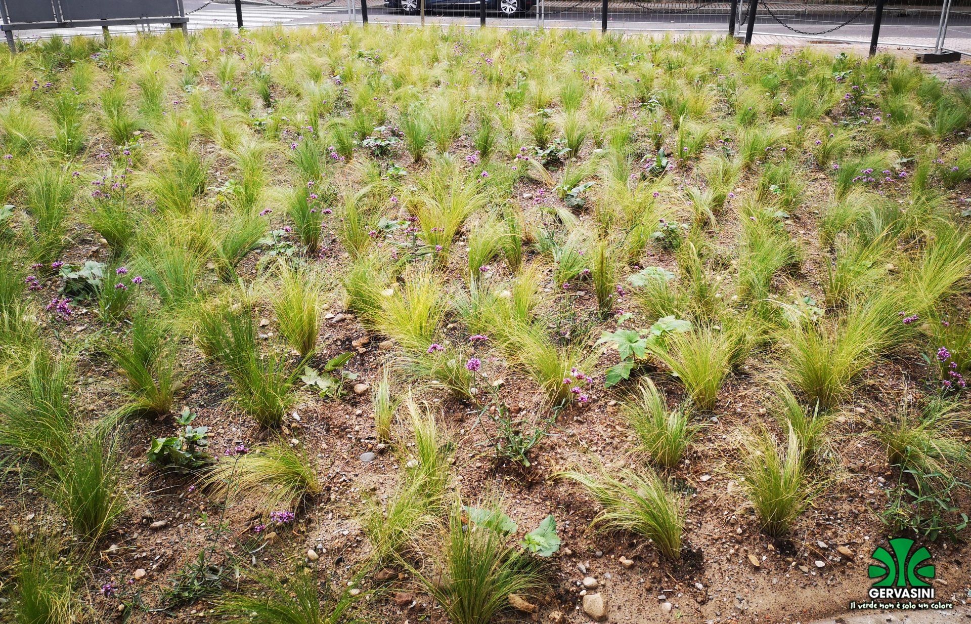 Realizzazione delle opere a verde. La sequenza mostra la situazione al termine dei lavori (24.10.19) e come si presenta oggi, a distanza di un anno.